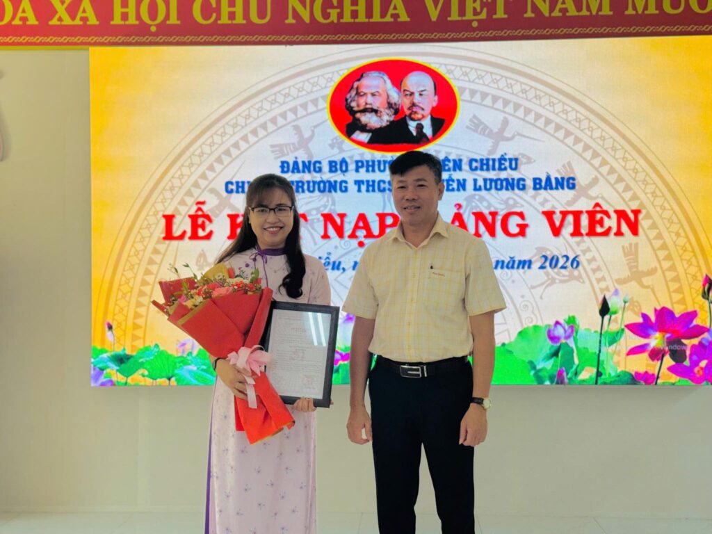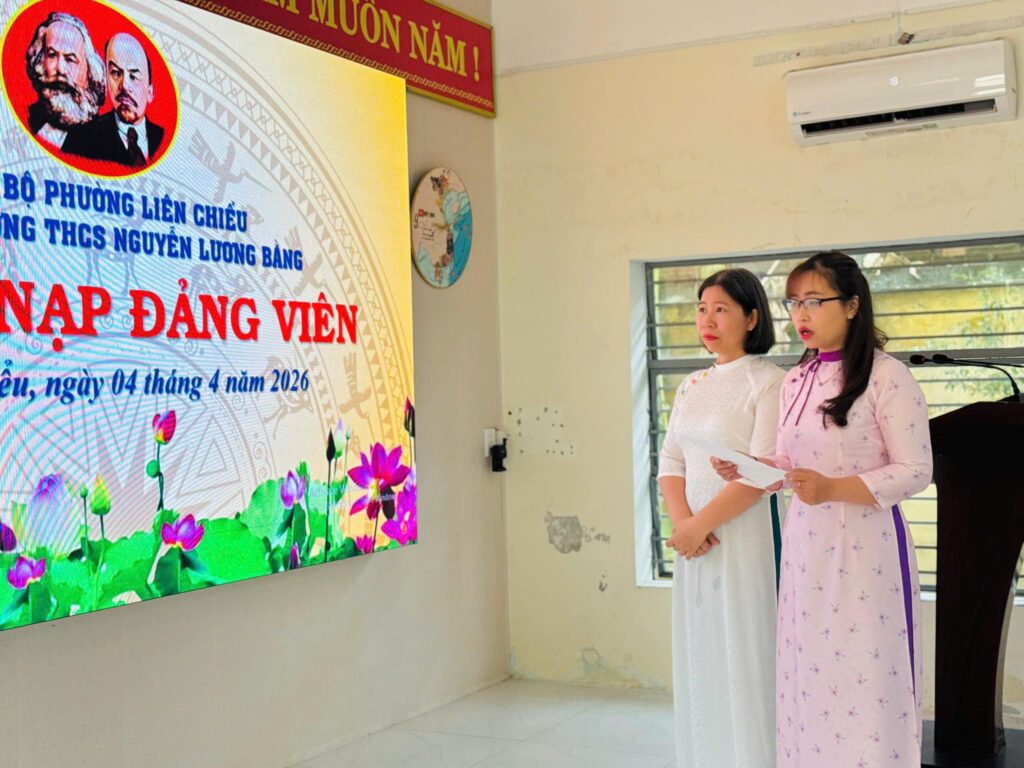 Sáng ngày 04/4/2026, Chi bộ Trường THCS Nguyễn Lương Bằng long trọng tổ chức Lễ kết nạp Đảng viên cho 02 quần chúng ưu tú: đồng chí Phạm Thị Nguyệt và đồng chí Lại Thị Xuân Thảo.