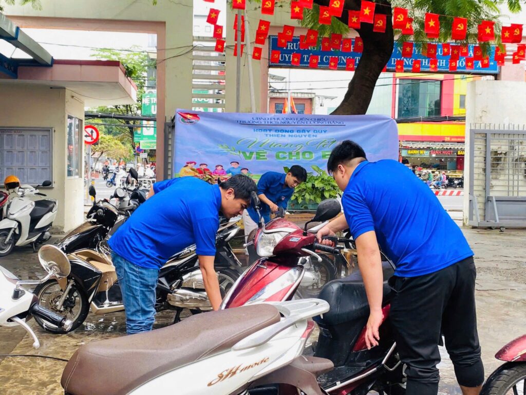 Chi đoàn trường THCS Nguyễn Lương Bằng tổ chức hoạt động rửa xe gây quỹ “Mang Tết về cho em”