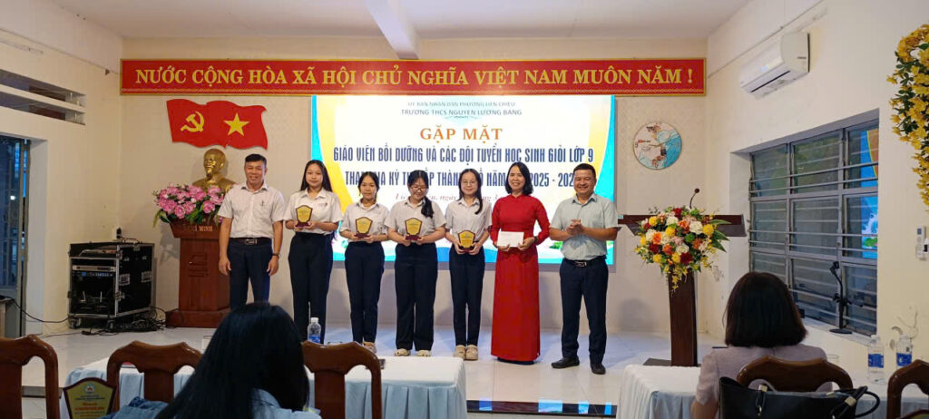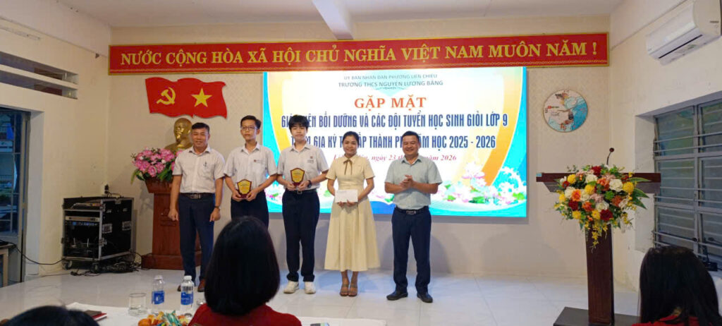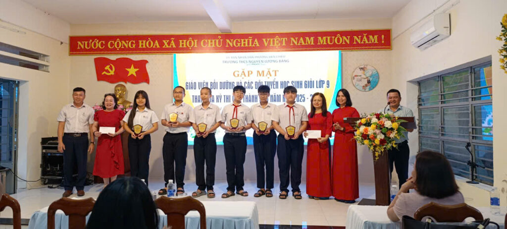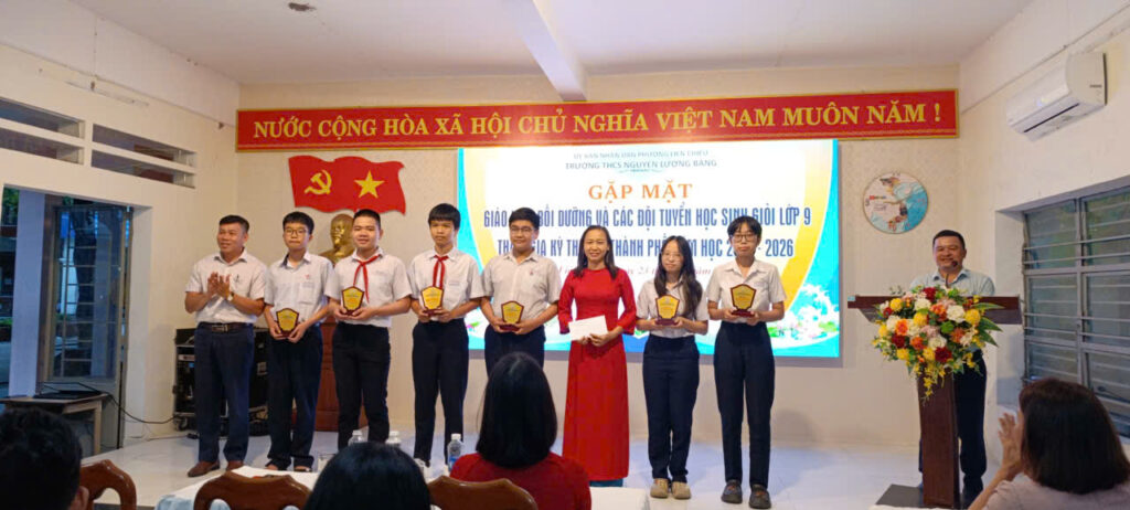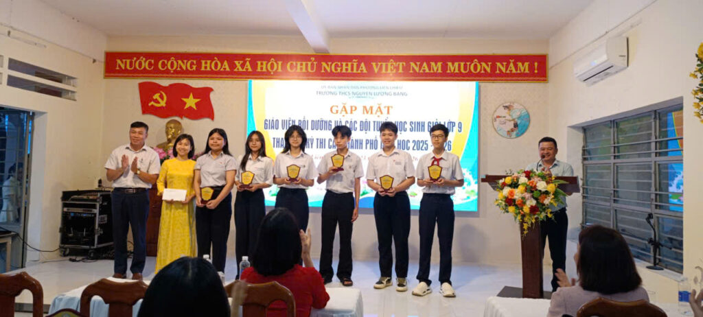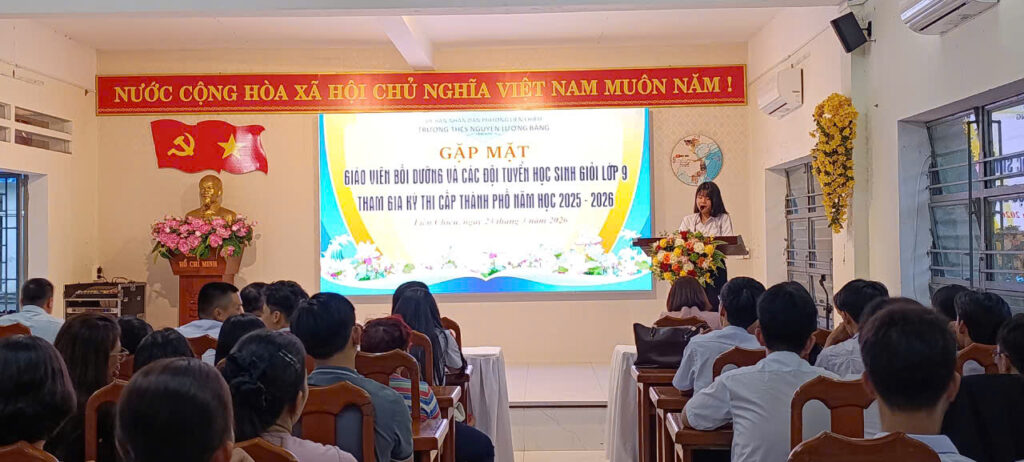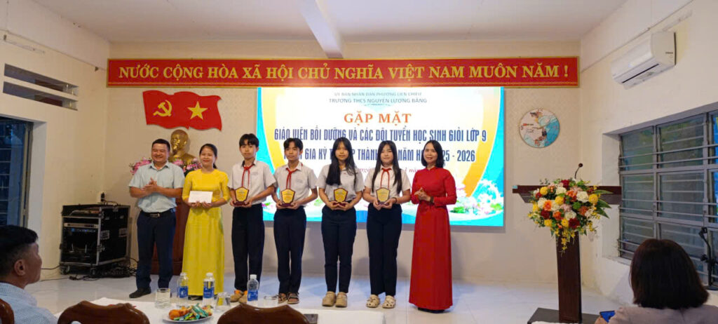 Chiều nay, Trường THCS Nguyễn Lương Bằng đã tổ chức buổi gặp mặt giáo viên bồi dưỡng cùng các đội tuyển học sinh giỏi lớp 9 trong không khí trang trọng, ấm áp và đầy ý nghĩa. Đây là hoạt động thiết thực nhằm động viên, khích lệ tinh thần trước khi các em bước vào Kỳ thi học sinh giỏi cấp thành phố năm học 2025–2026.